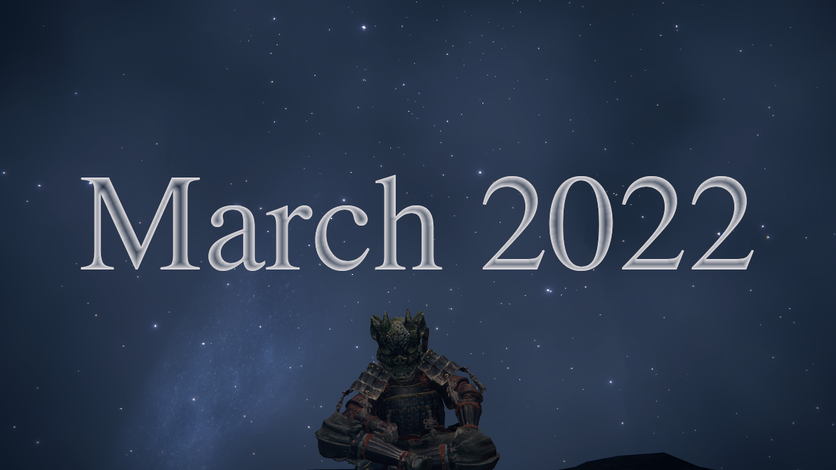 Coincidentally, that is why I chose to upload a similar – but different – picture than last month. The one from March was done mid game, with some early game equipment even. The one for April on the other hand, that was my end game gear (finished Elden Ring once, going at it for the second time). I think the comparison between those two pictures represents a great analogy; often times the changes are perhaps not crazily different on the surface, but there can be much more going on underneath!