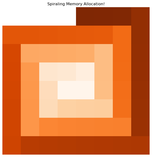 Well, I tried to be clever here by trying to identify which “layer” my number would fall into (a single digit in the center is the 0th layer, then layer 1 has eight numbers around, etc…). Secondly, understand how far away from the center of that particular row or column the number is. Think of it as an L shape: get to the center of the row (or column, depending on orientation), and then straight to center. Here’s the code that I used: